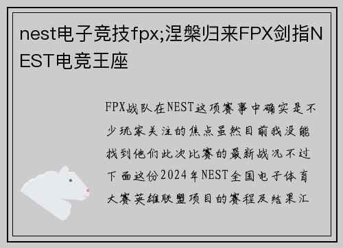 关于你想了解的CEST中国电子竞技娱乐大赛在安徽的情况,目前的搜索结果中没有提供历年完整的冠军战队名单。我为你整理了这项赛事的一些关键背景信息。fun88乐天堂在线登录 赛事基本信息 主办与承办:CEST中国电子竞技娱乐大赛是由中国互联网上网服务行业...